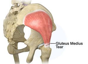 A gluteus medius tear is a condition characterized by severe strain on the gluteus medius muscle that results in partial or complete rupture of the muscle.